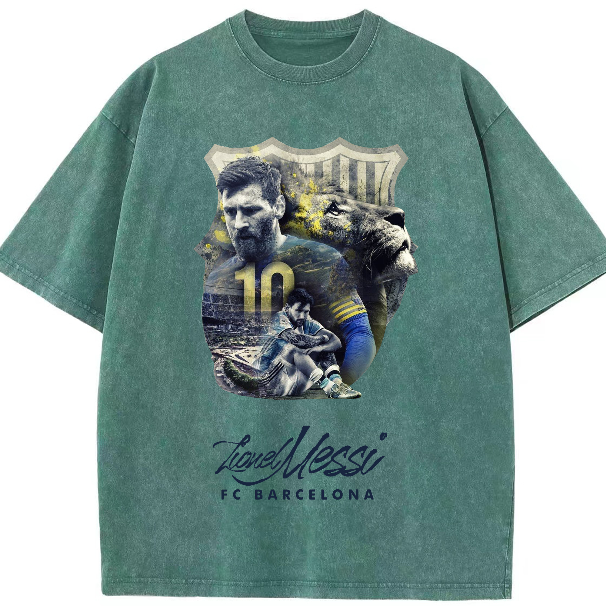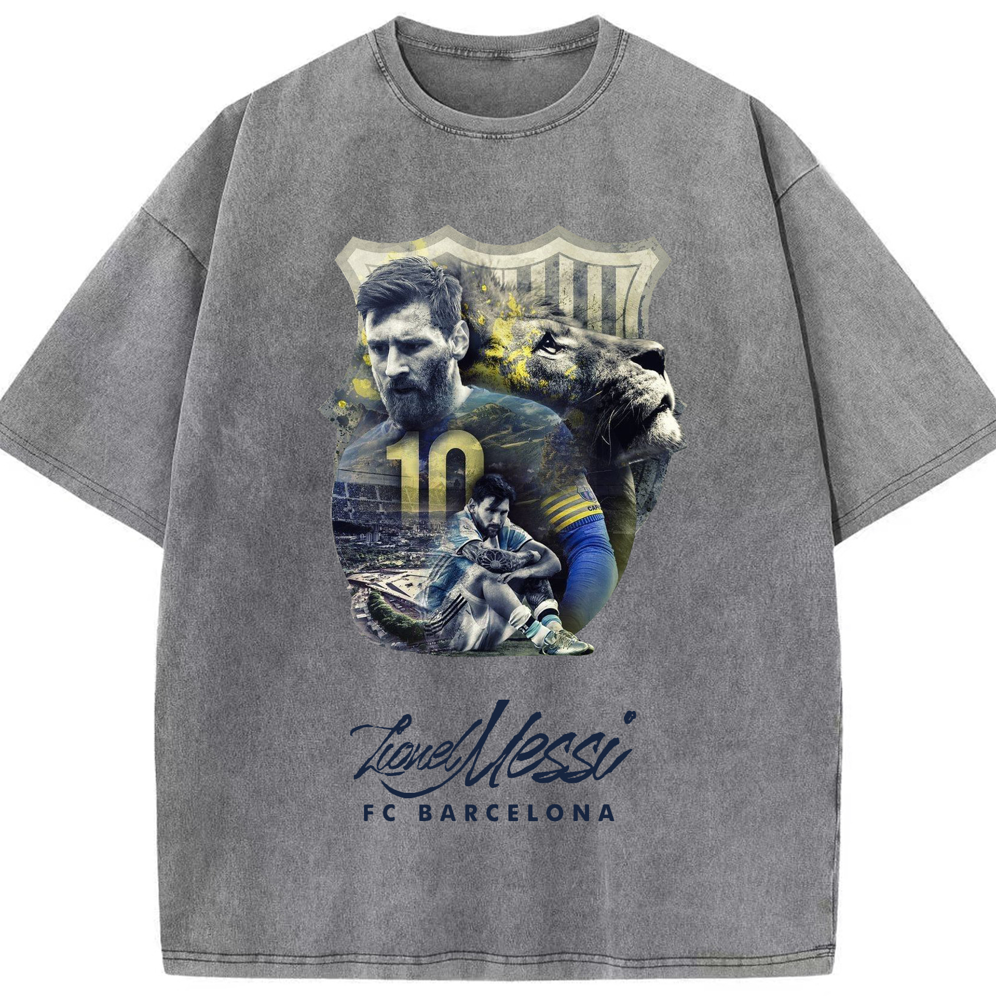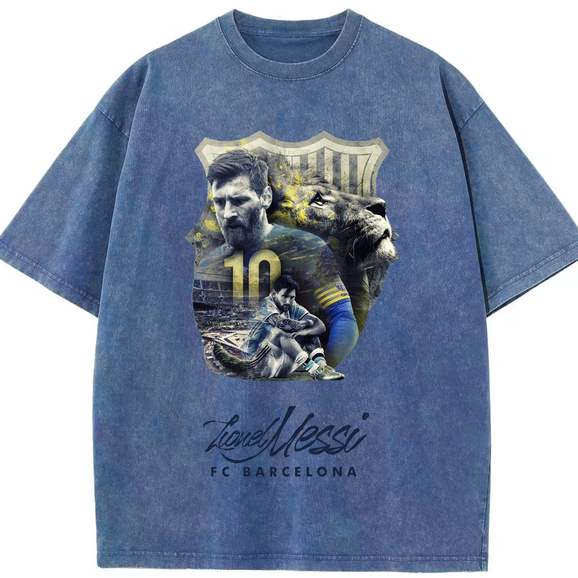 メッシ 全盛期 栄光の軌跡 - 綿100% ヴィンテージ風 半袖Tシャツ ・ フロントプリント ・ 柔らか肌触り ・ 通気性 快適 ・ スポーツ カジュアル 外出用