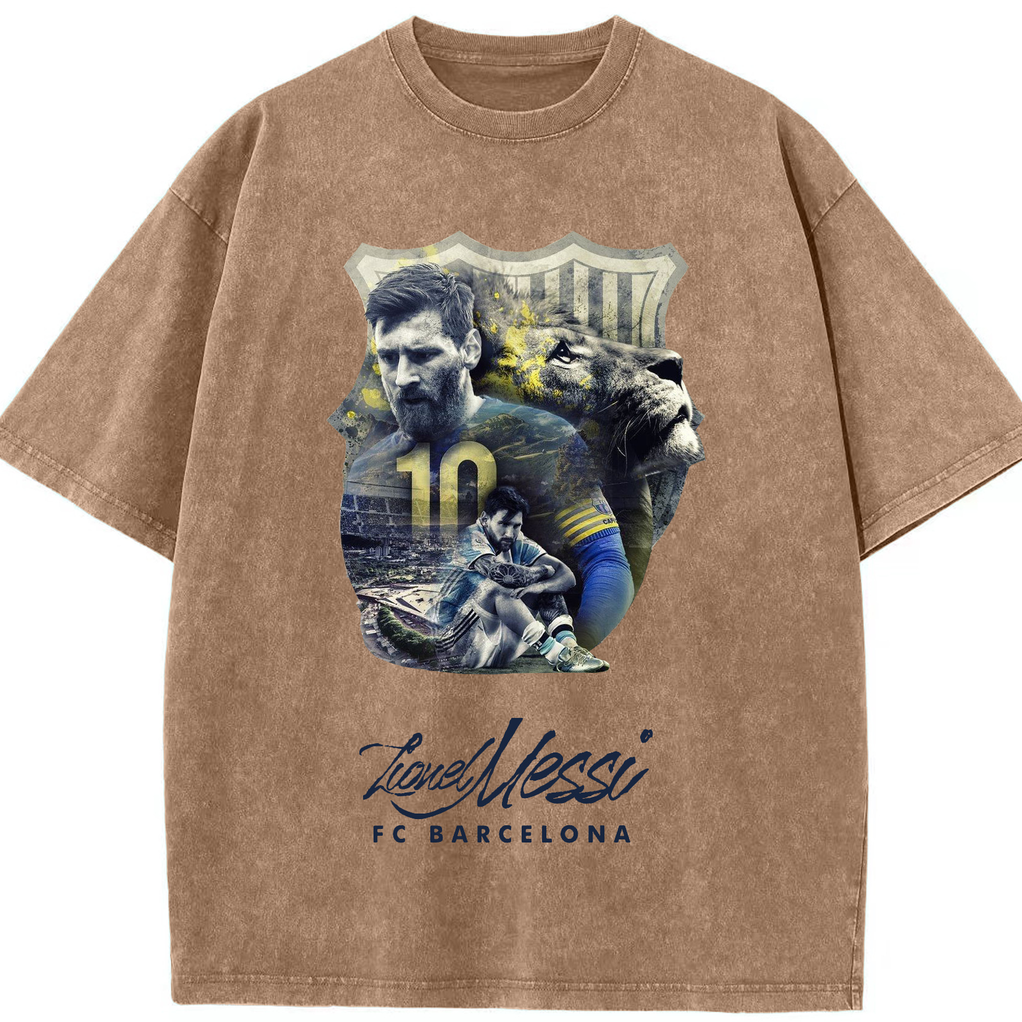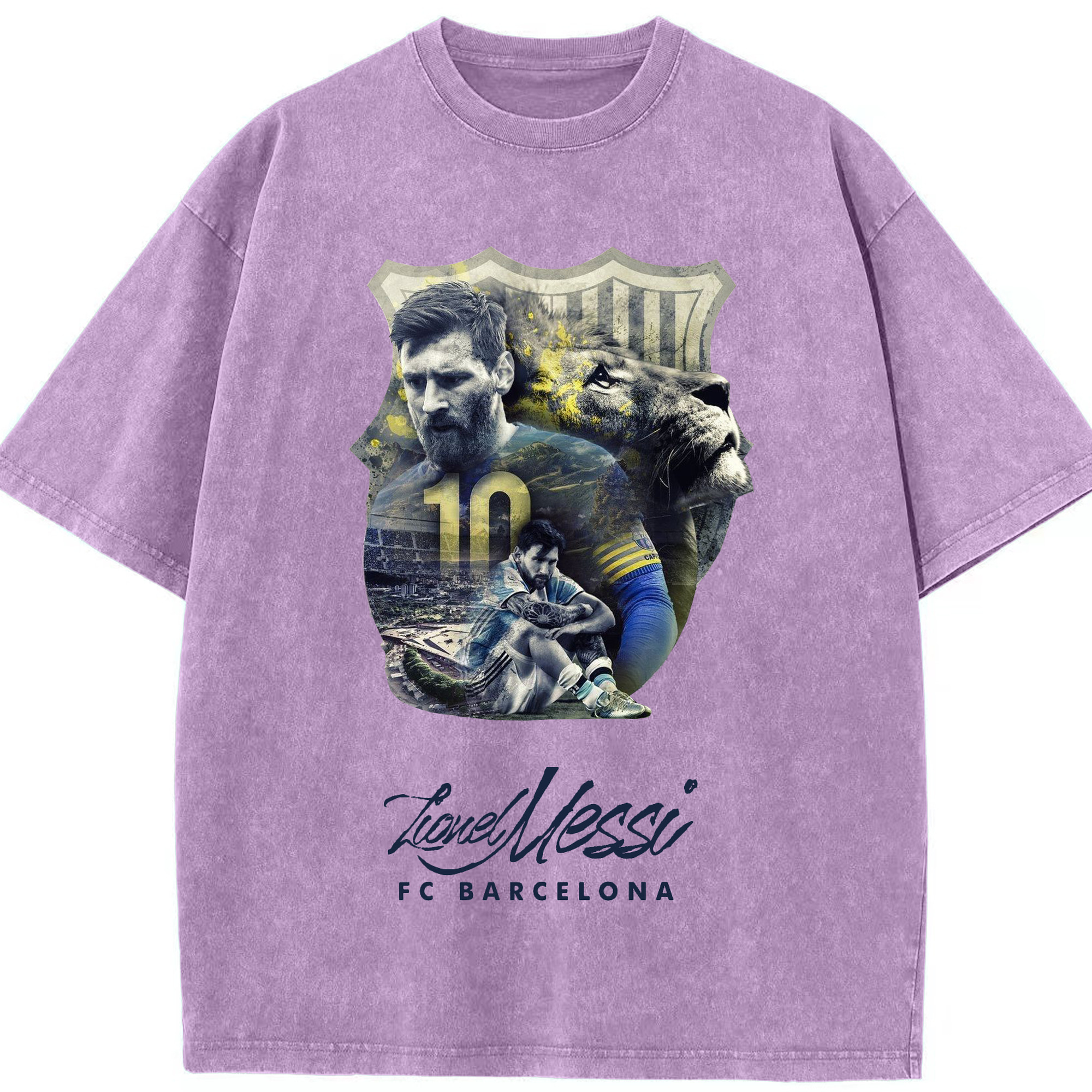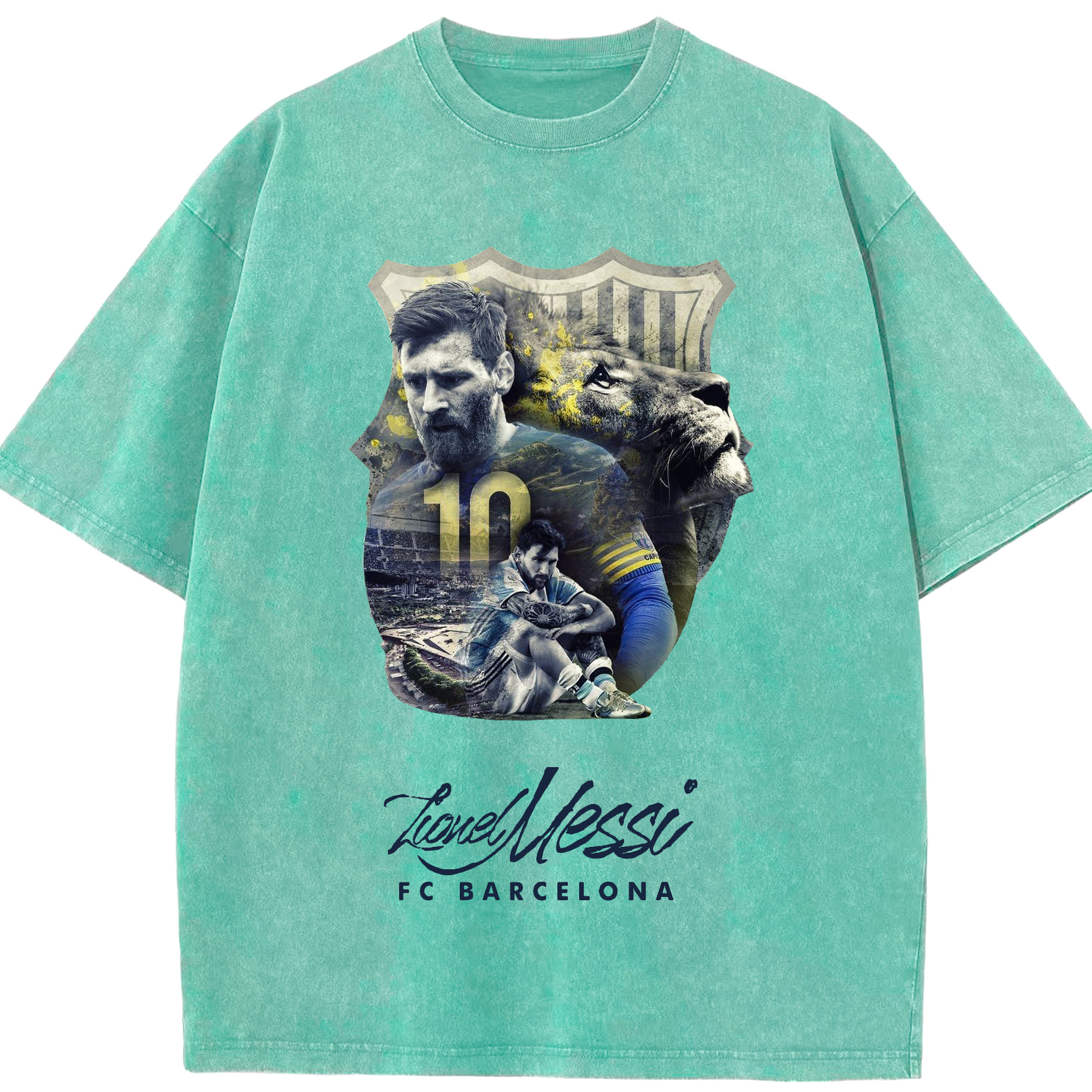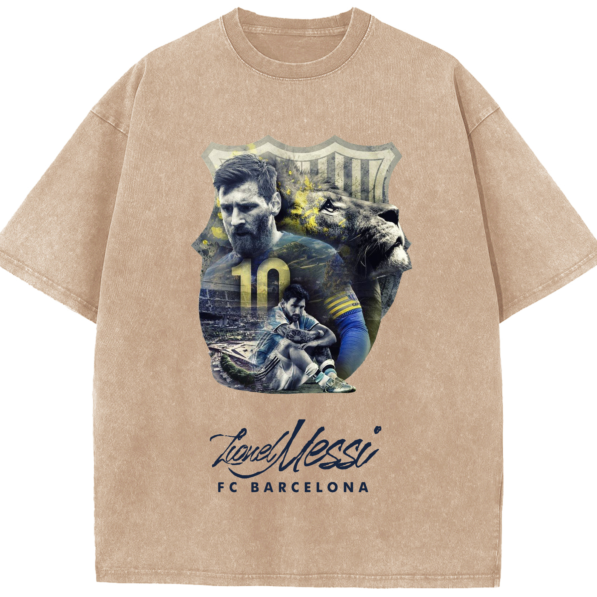 メッシ 全盛期 栄光の軌跡 - 綿100% ヴィンテージ風 半袖Tシャツ ・ フロントプリント ・ 柔らか肌触り ・ 通気性 快適 ・ スポーツ カジュアル 外出用