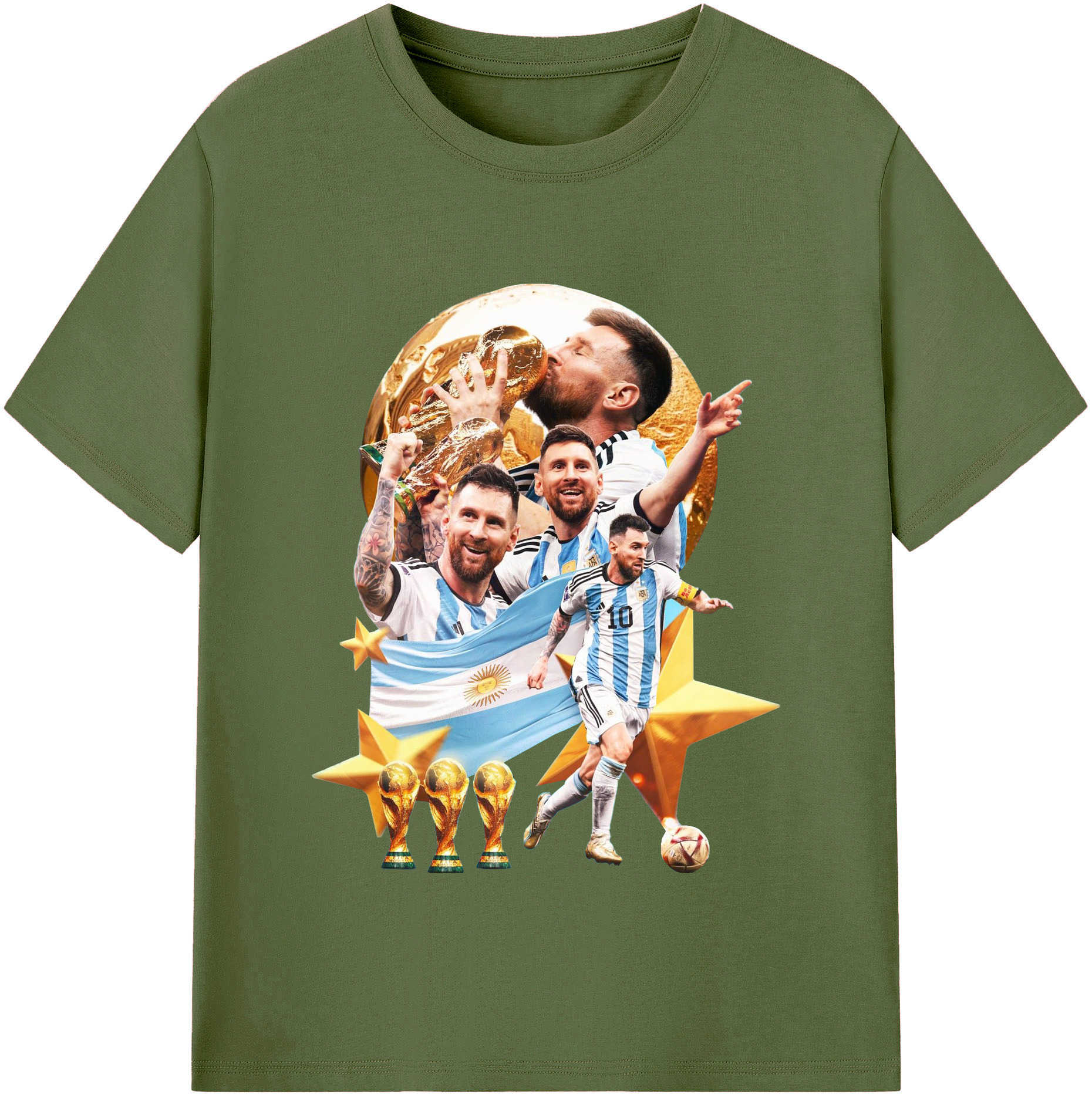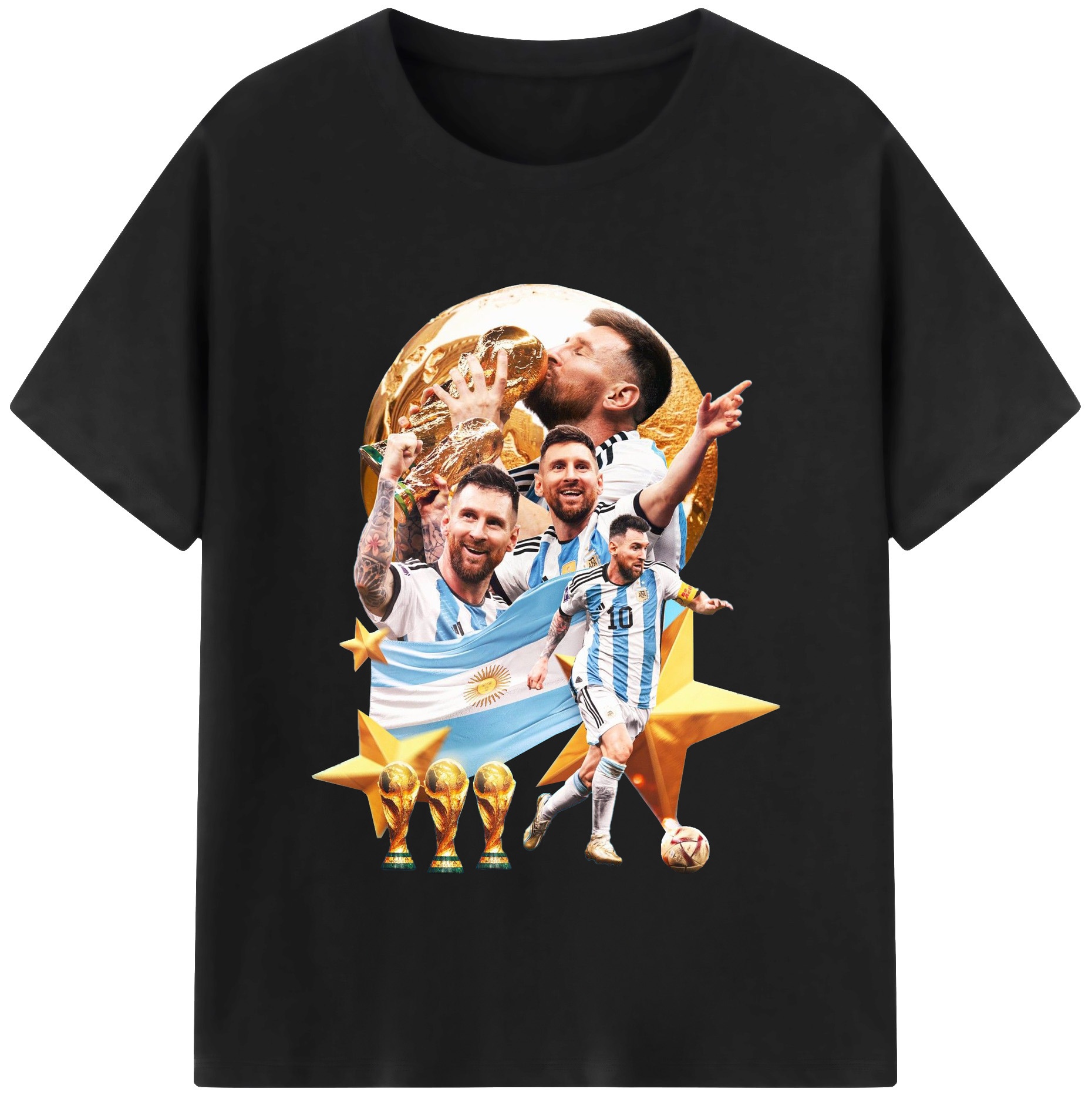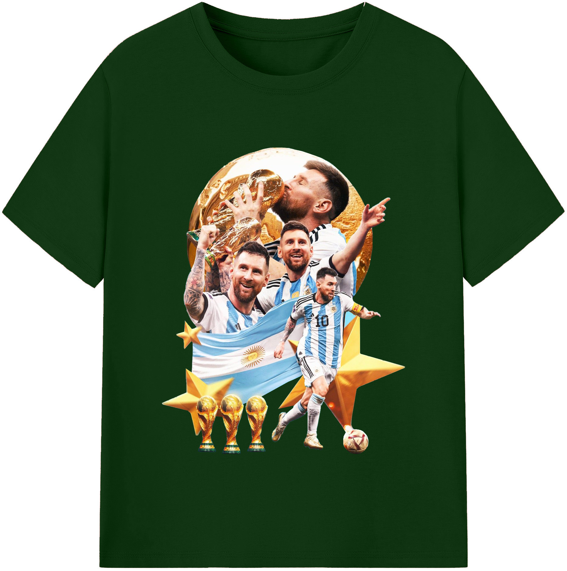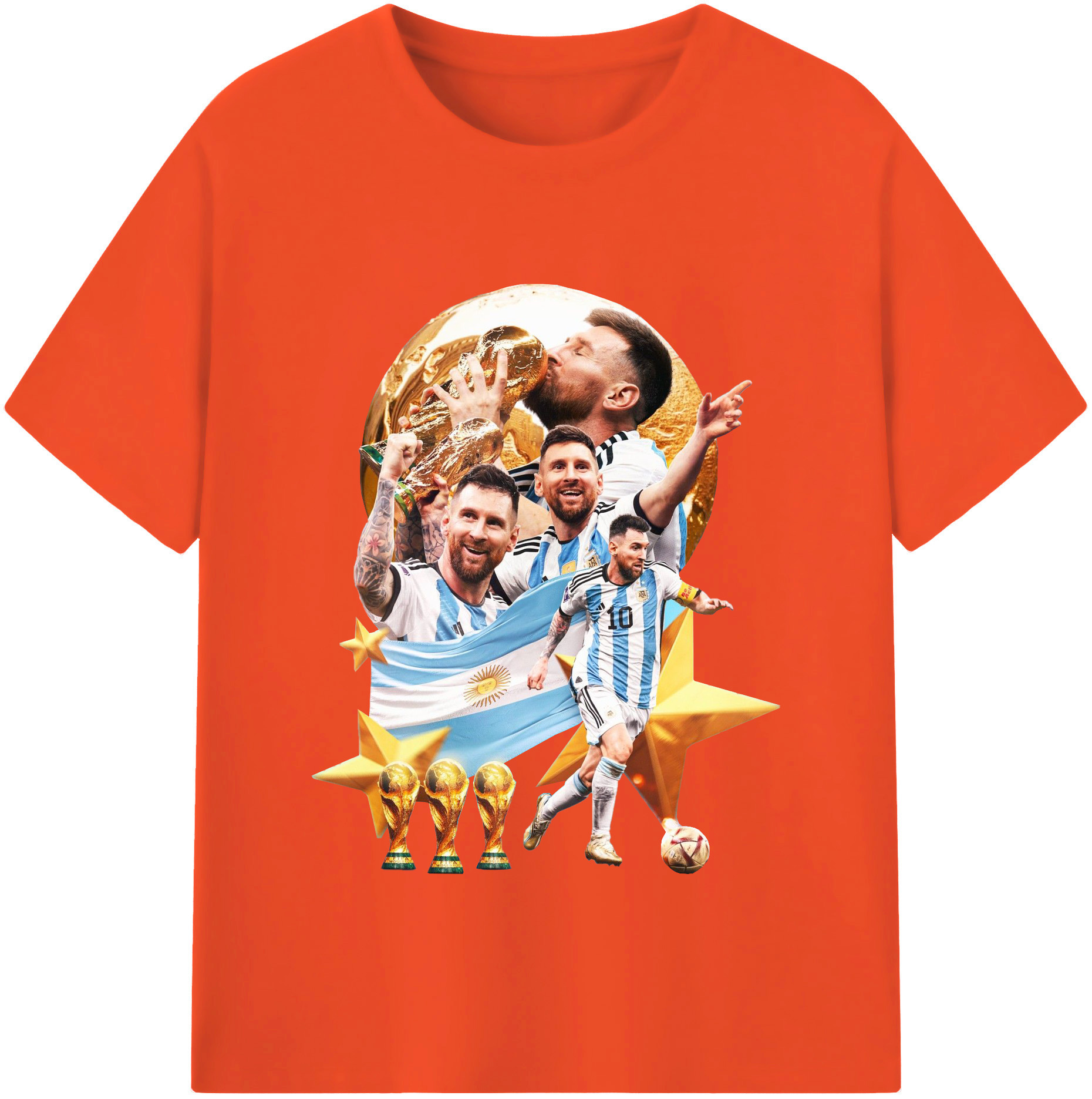 リオネル・メッシ 10番 応援 - 綿100% 半袖Tシャツ ・ フロントプリント ・ 快適 通気性 ・ 日常使い 散歩 スポーツ用
