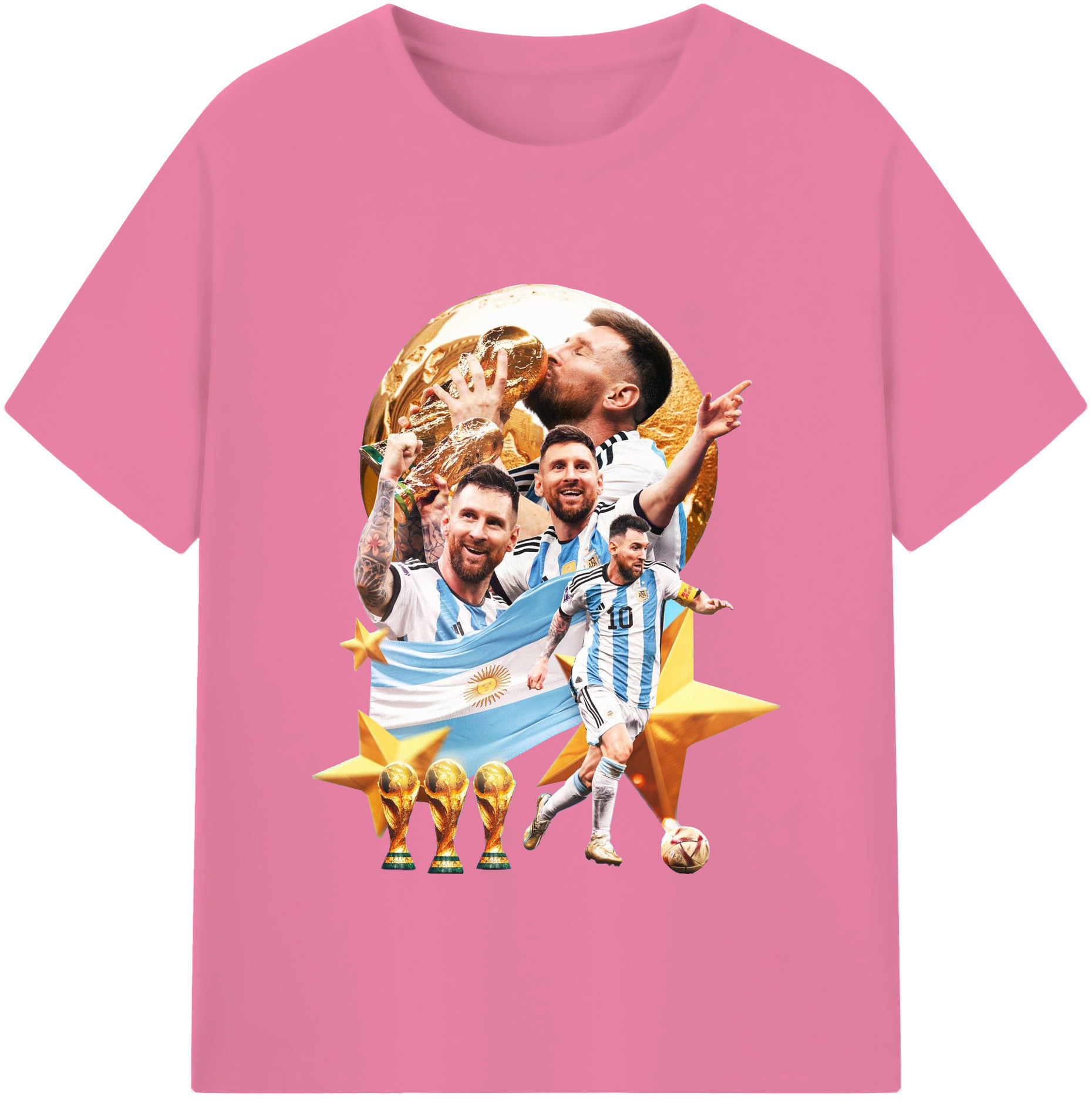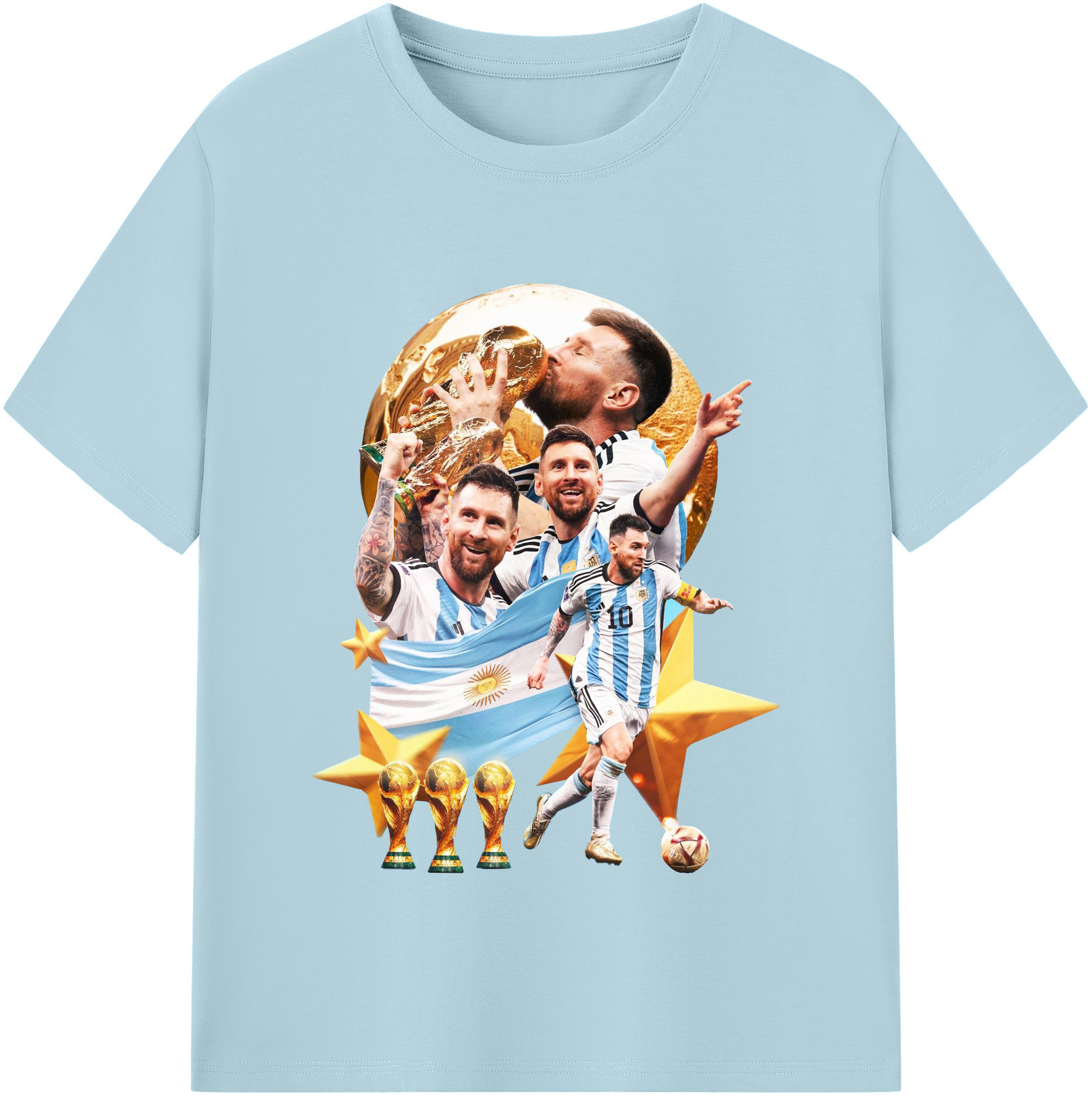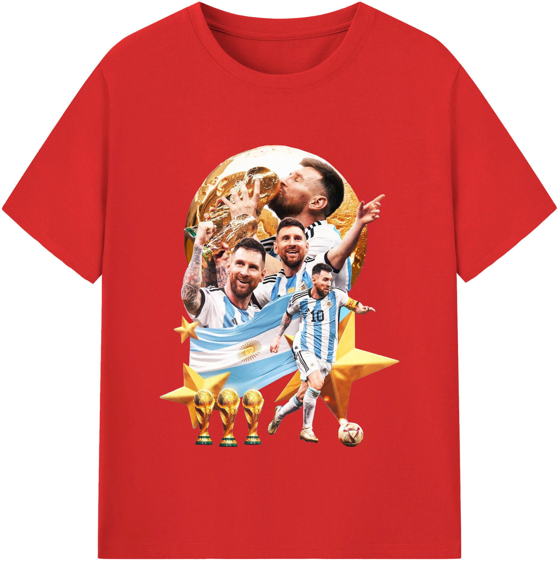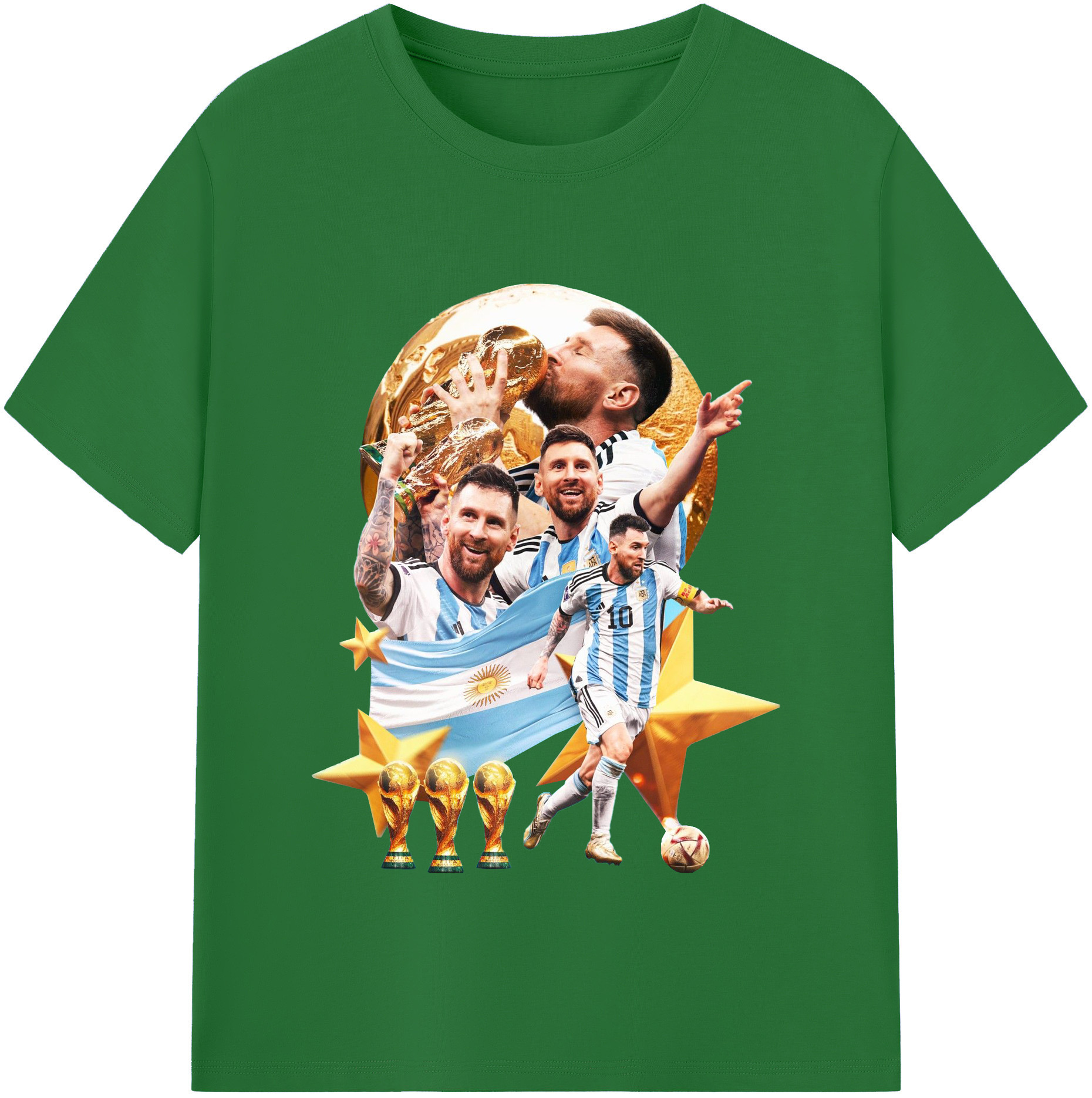 リオネル・メッシ 10番 応援 - 綿100% 半袖Tシャツ ・ フロントプリント ・ 快適 通気性 ・ 日常使い 散歩 スポーツ用