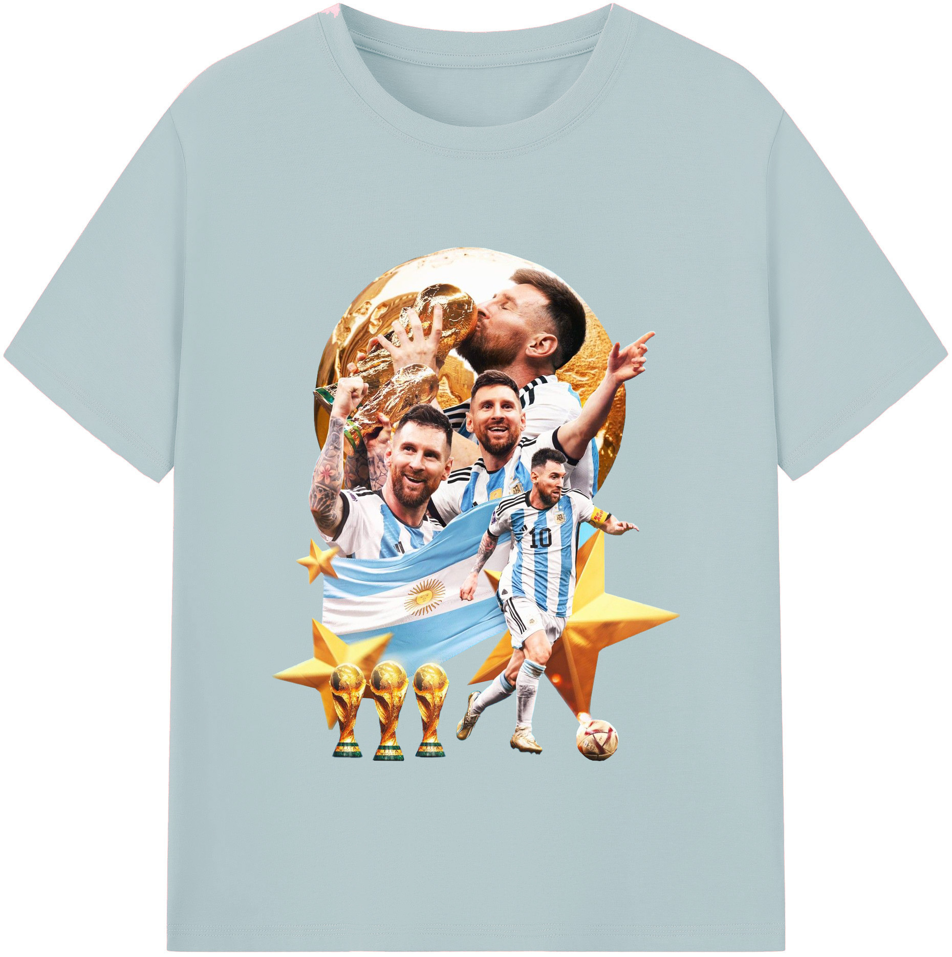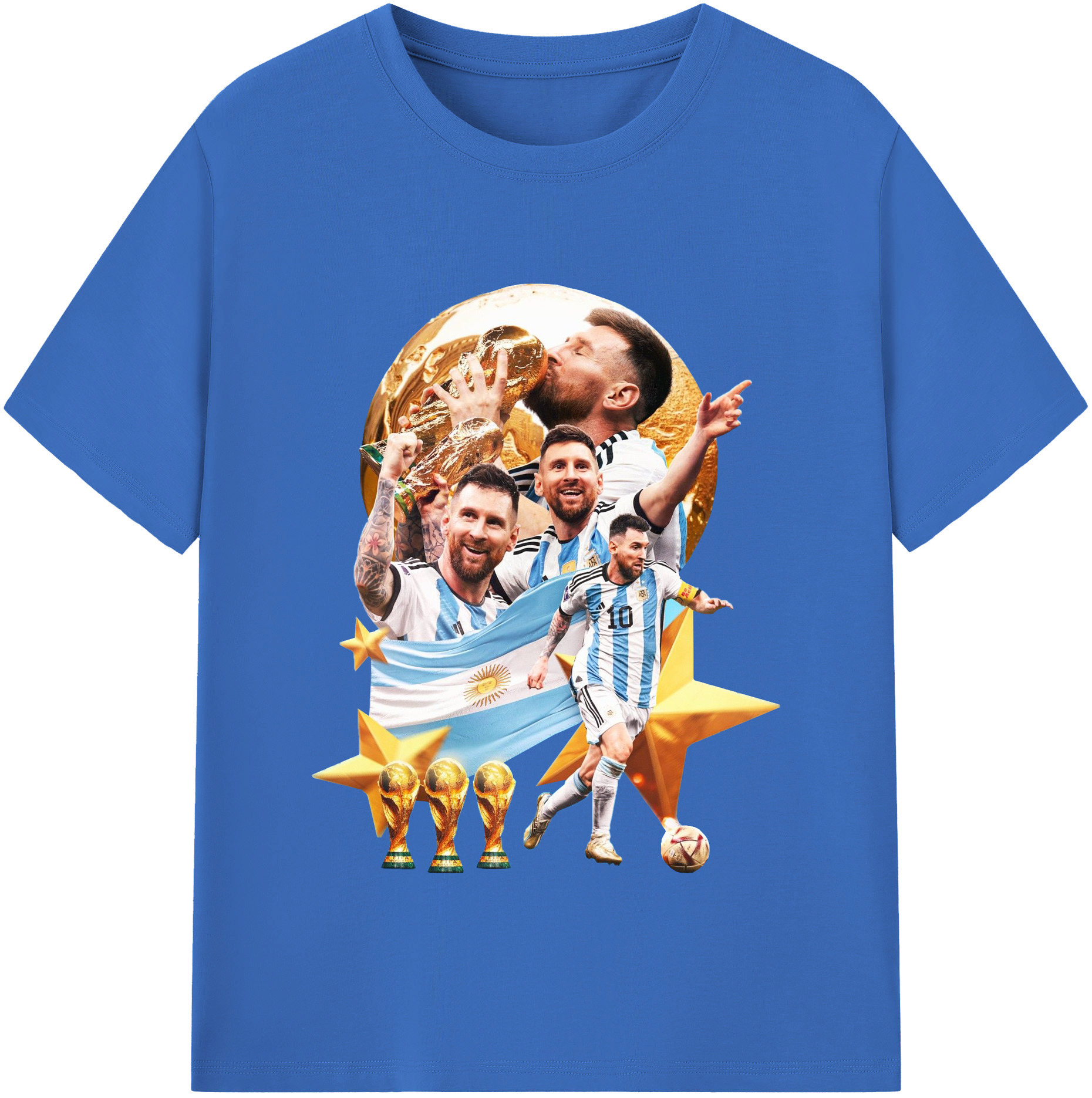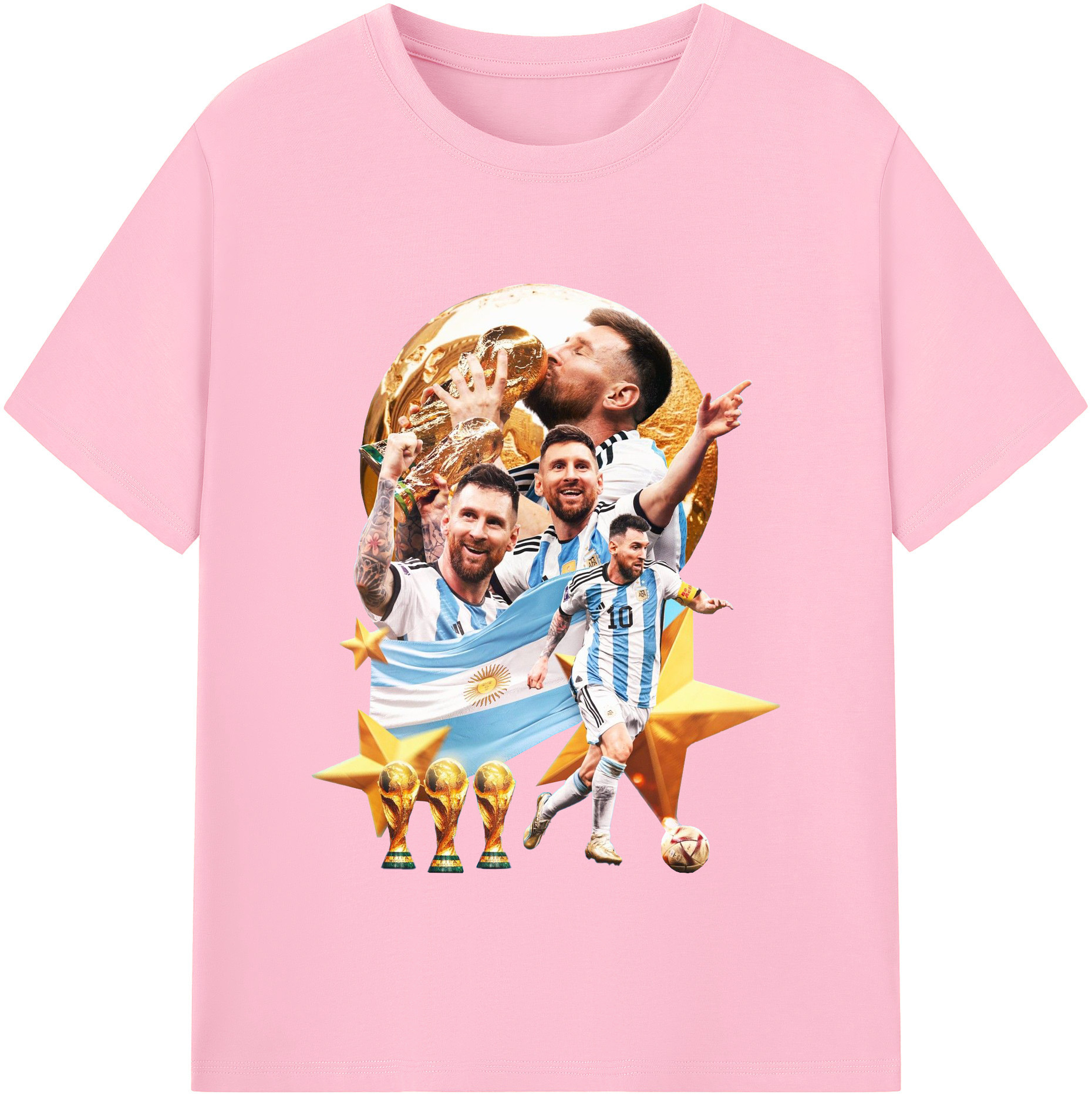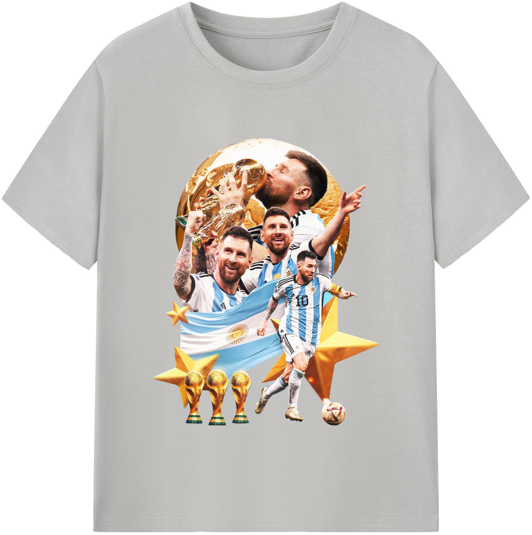 リオネル・メッシ 10番 応援 - 綿100% 半袖Tシャツ ・ フロントプリント ・ 快適 通気性 ・ 日常使い 散歩 スポーツ用