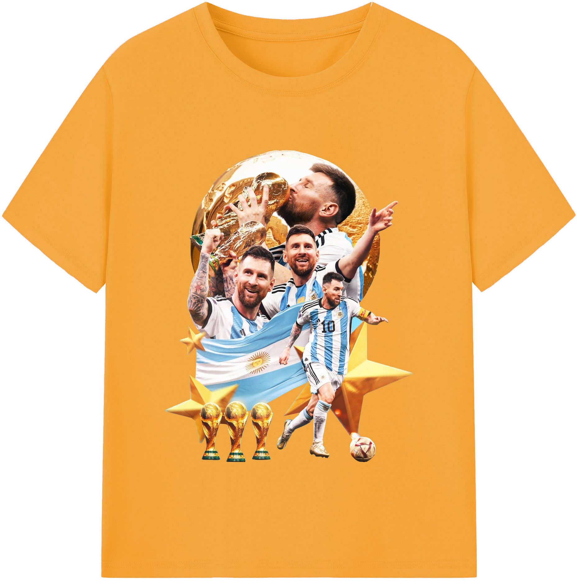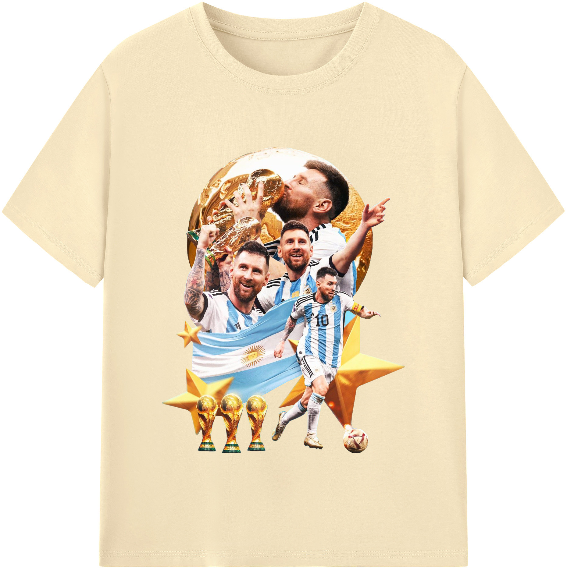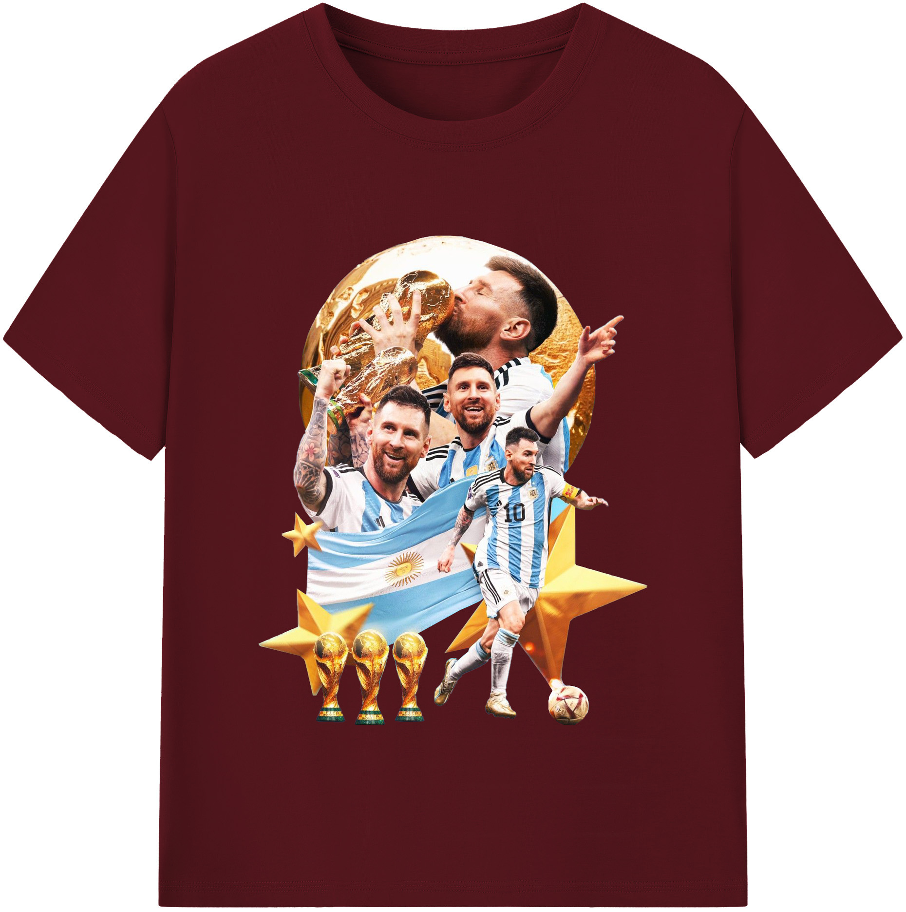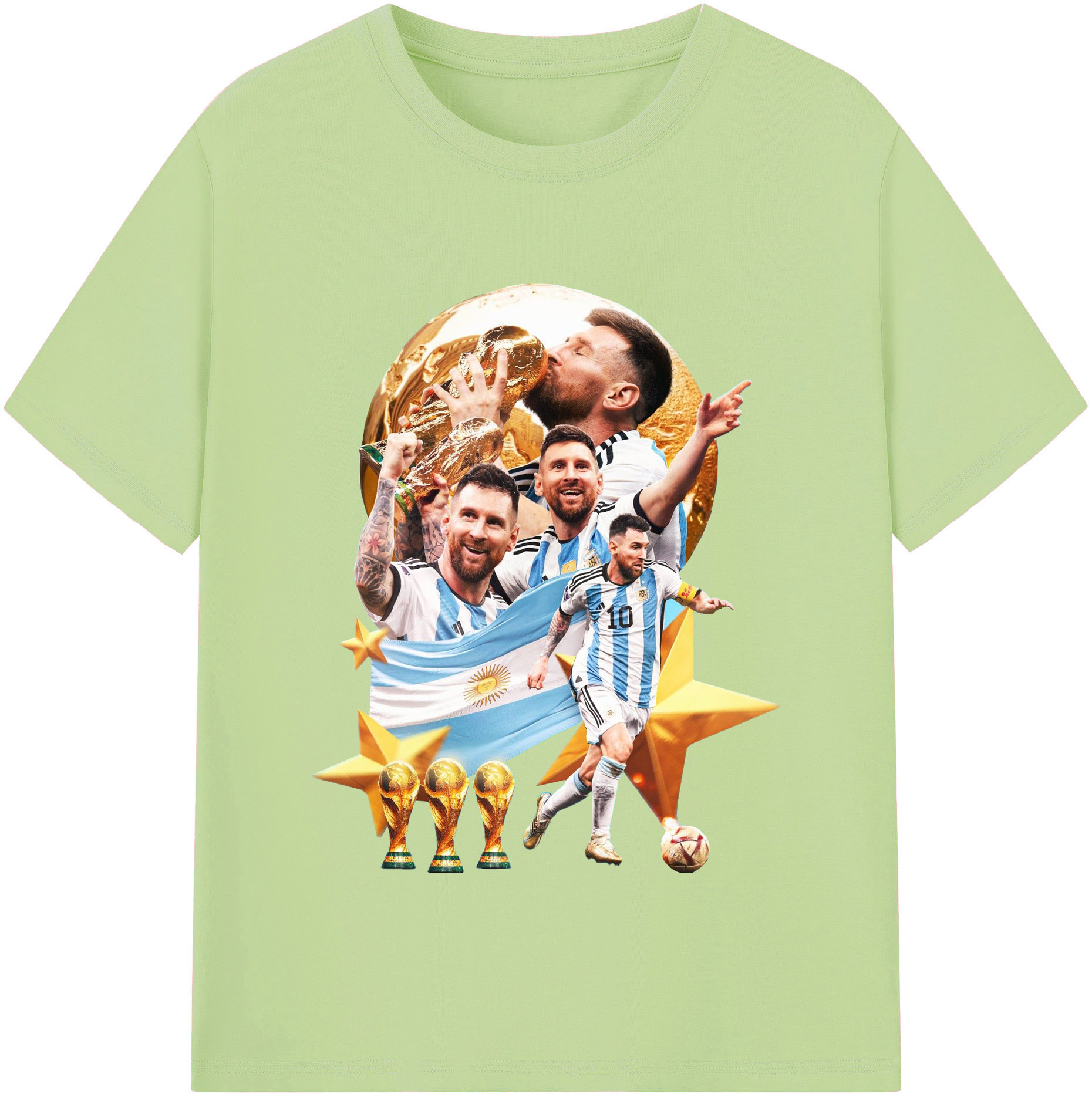 リオネル・メッシ 10番 応援 - 綿100% 半袖Tシャツ ・ フロントプリント ・ 快適 通気性 ・ 日常使い 散歩 スポーツ用